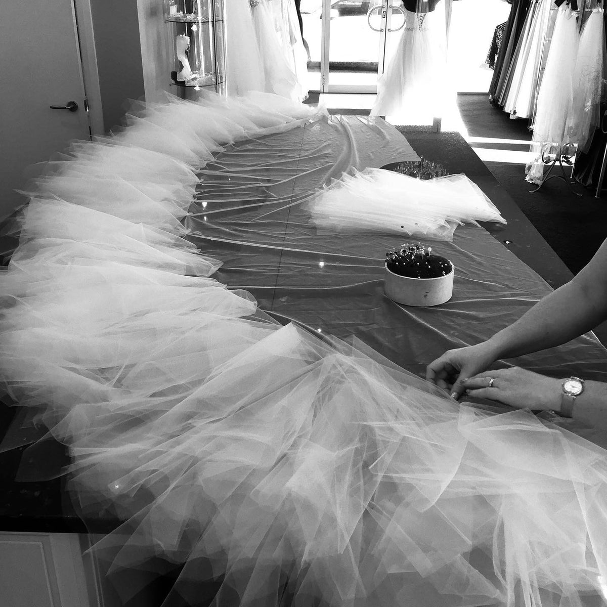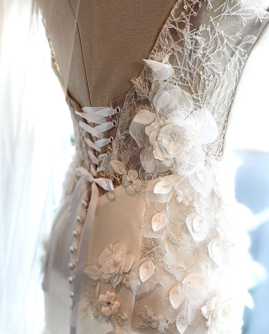Melanie Jayne, a family-owned and operated couture house, where Melanie and her team craft exquisite bridal and evening wear in the picturesque city of Coffs Harbour, Australia, using the most luxurious fabrics and laces sourced globally, resulting in timeless creations. Brides may select from our exquisite array of ready to wear bridal gowns, or opt for a custom-designed gown crafted exclusively for them. From the initial Style and Design Bridal Consultation to the ultimate wedding gown, Melanie Jayne will materialise your vision. Commencing with a meticulously crafted sketch, proceeding to the selection of luxurious fabrics, exquisite hues, and intricate laces, culminating in the creation of your bespoke bridal gown.
